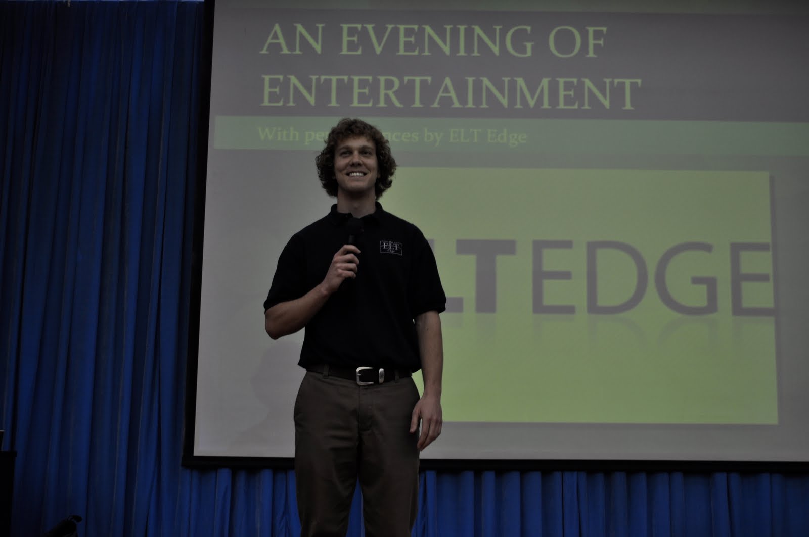 At night there was a performance. We had been telling students and had a sign made, and apparently Mr. Yu was making students attend.